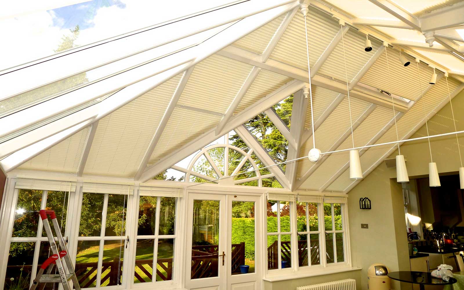 At Thomas Bentley Blinds we offer various options for controlling the light and heat entering your conservatory, this makes a room that you can use year round.